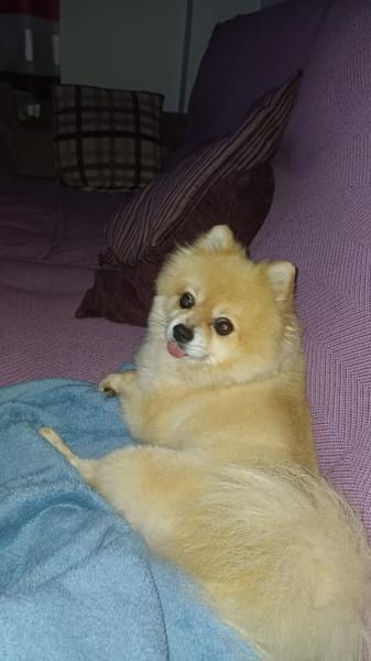 Pompi es un pequeño pomerania, muy cariñoso, le gusta estar en brazos. Es un poco gruñón. Tiene que aprender a hacer sus necesidades fuera de casa, ya que ha vivido siempre en un patio de una familia. Ahora está en acogida con una familia, que tiene perros y gatos.